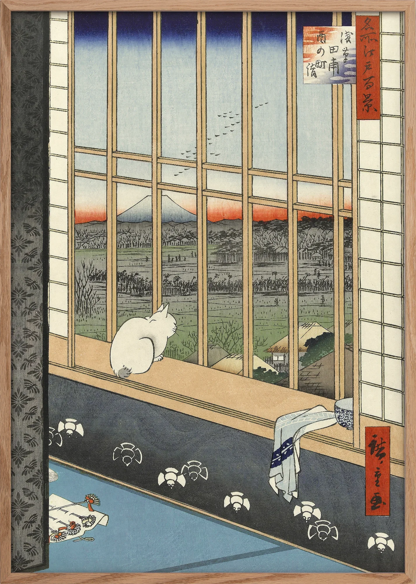 Crafted by Utagawa Hiroshige, a master of ukiyo-e landscapes, this piece blends everyday life with timeless beauty, making it a perfect addition to contemporary spaces. Available in multiple sizes to suit any room, from intimate studies to statement walls.