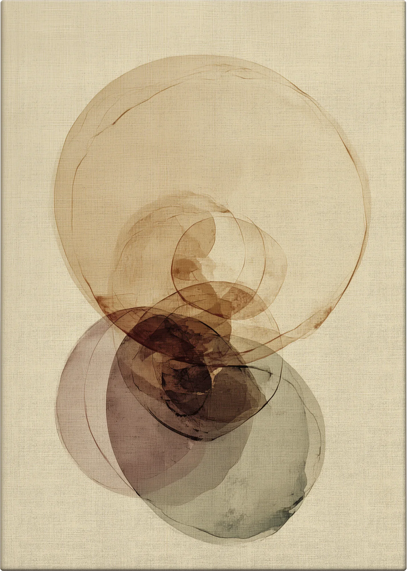 Life’s Purpose is a contemporary abstract composition featuring softly layered circular forms in muted earthy tones. The overlapping shapes create a sense of flow and connection, symbolizing the continuous cycles of growth, reflection, and alignment that define human experience. The use of translucent color and organic geometry evokes both stillness and movement, inviting quiet contemplation.